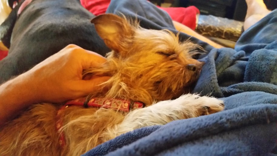 sleep, but if I stop, then she noses my hand for more attention