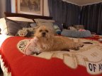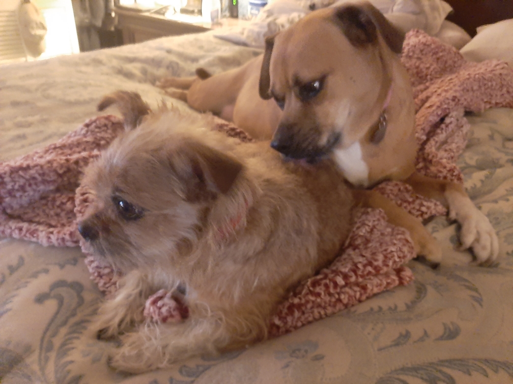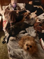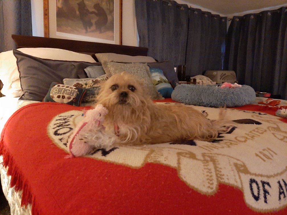 below, but anytime all of the dogs can get on the bed with her,